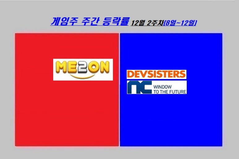 데브시스터즈는 2주 차 등락률은 -8.40%로 1주차 -3.22%에 이어 2주째 부진했다. 8일부터 12일까지 5거래일 연속 우하향했다. 12월 10일 -2.45%로 최대 낙폭을 기록했다.