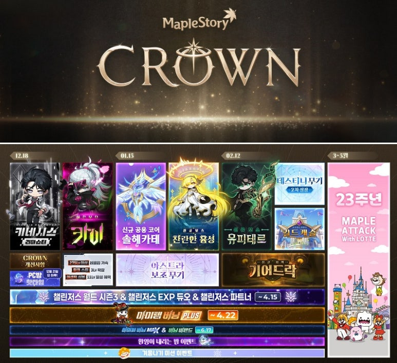 12월 13일(토) 인기 온라인게임 ‘메이플스토리’의 2025 겨울 쇼케이스 '크라운(CROWN)'를 통해 대규모 겨울 업데이트 계획을 발표했다.