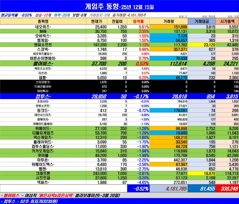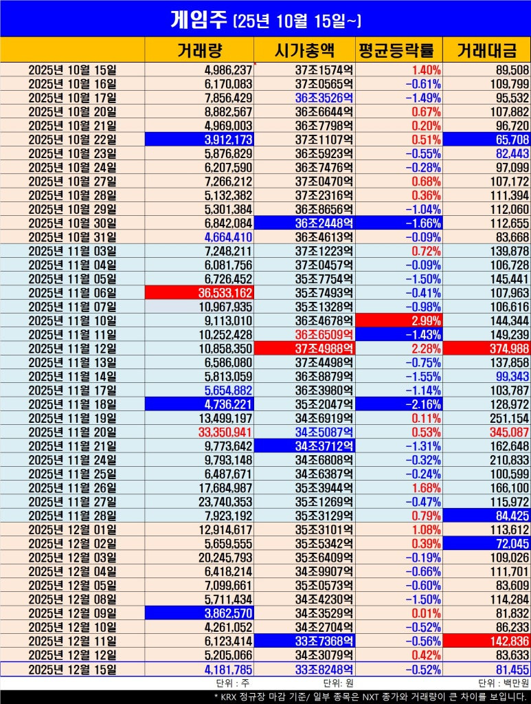 | 투심 최악! 게임주, 거래량·대금 '25년 들어 최저' (0) | 2025.12.17 |