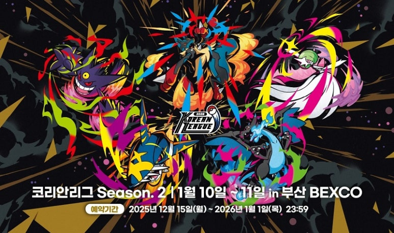 포켓몬 카드 게임 ‘2026 코리안리그 시즌2’를 2026년 1월 10일부터 11일 부산 벡스코(BEXCO) 제2전시장 4B 홀에서 개최한다.