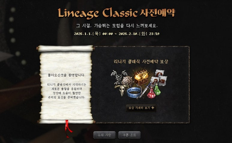 모든 이용자는 2월 10일까지 ‘리니지 클래식’ 사전예약에 참여할 수 있다.