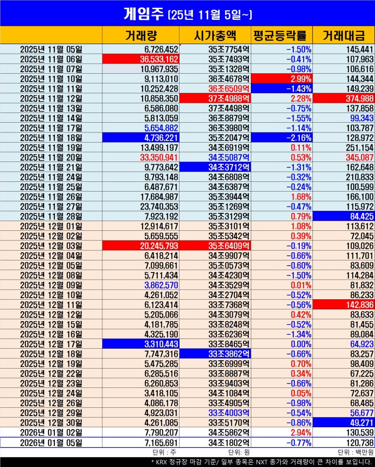 | 게임주, 26년 '쾌조 출발'…빅10 상승 '34조 탈환' (0) | 2026.01.02 |