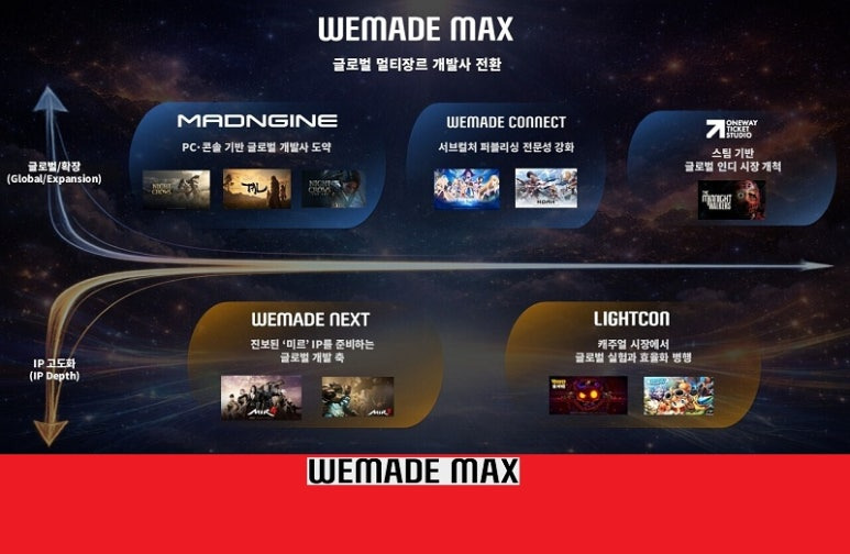 위메이드맥스는 이날 올해 핵심 전략으로 글로벌 확대와 IP 고도화를 꼽았다. 각기 다른 플랫폼과 장르의 게임을 앞세워 글로벌 도약의 원년으로 삼겠다고 밝힌 것.