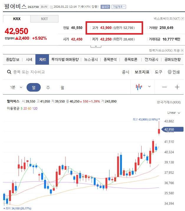 1월 22일(목), 펄어비스 주가의 급등 이유다.