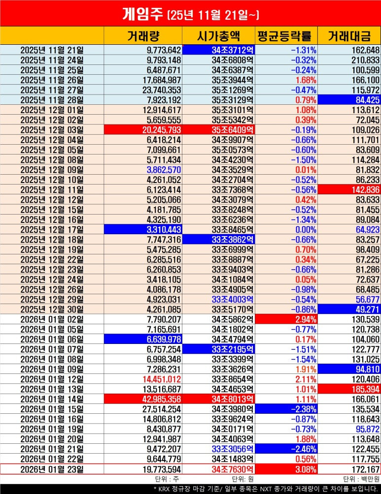 | 급등 후 大폭락! 게임주 '개잡주 신세' …1조 증발 (1) | 2026.01.21 |