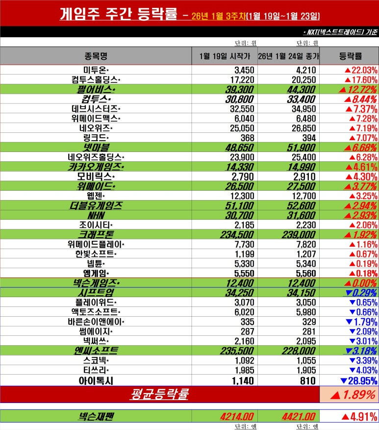 | 게임주, 미친 질주…37조 회복+네오위즈, 52주 신고가 (0) | 2026.01.27 |
