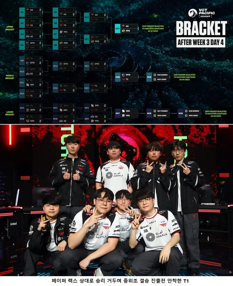 '2026 VCT 퍼시픽 킥오프' 3주 차 결과를 공개했다. T1이 중위조 결승 진출권을 획득했고 DRX는 2연승을 거뒀지만 젠지는 글로벌 이스포트에 역전패, 대회 일정을 마감했다.
