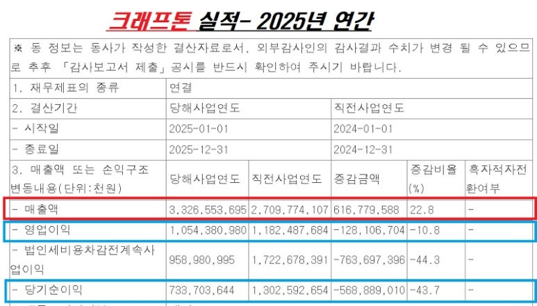 위메이드맥스·위메이드플레이· 크래프톤 등 25년 연간 실적 공개