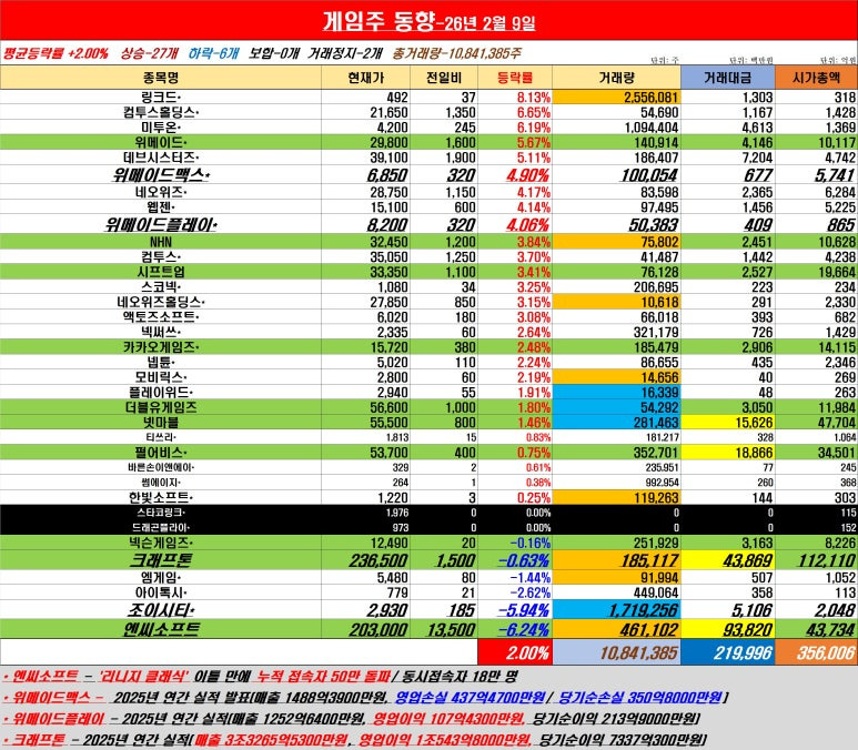 | 찔끔 반등! 게임주, 37조 탈환…빅3 초강세 (0) | 2026.02.11 |