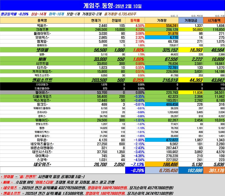 | 찔끔 반등! 게임주, 37조 탈환…빅3 초강세 (0) | 2026.02.11 |