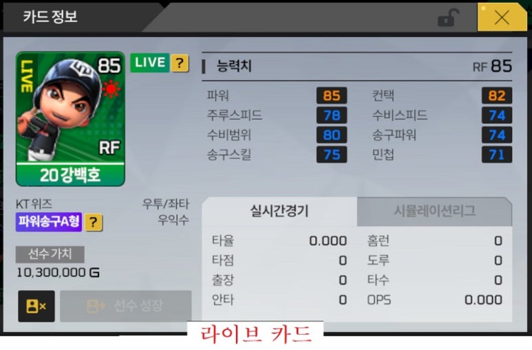 ‘마구마구2020 모바일’의 라이브 카드는 KBO 경기 기록에 따라 선수 능력치가 변동되는 카드다. 특정 등급은 없지만 능력치 분포가 매우 다양하고, 실제 프로야구와 연동되는 재미를 느낄 수 있다. 라이브카드는 2주마다 성적이 업데이트돼, 이용자는 지금 부진하더라도 좋은 성적이 예상되는 선수를 영입해 육성하는 등의 재미를 경험해볼 수 있다.