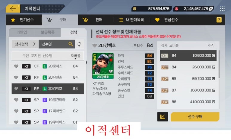 ‘마구마구2020 모바일’의 이적센터는 이용자들 간 자유로운 거래가 가능하다. 이용자는 위시카드를 카드팩이 아니더라도 이적센터에서 손쉽게 획득할 수 있고, 동시에 본인에게 필요 없는 선수카드는 판매할 수 있다.