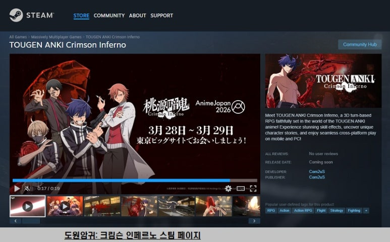 스팀 페이지에서는 게임의 세계관과 주요 특징, 상세 장르 정보, 권장 사양 등 신작과 관련된 핵심 정보를 확인할 수 있다.